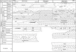 The Modio Formation is interpreted as a transgressive sequence deposited from tidal to marine shelf. The upper contact with Aiduna Formation is not well exposed and is interpreted to be disconformable (UFFORD, 1996).