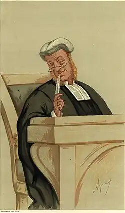As a Judge Sir William has shown himself strong, ready, and always able to take a firm grasp of any case before him in all of its aspects. He relies entirely upon himself, forms and adheres very strongly to his own opinion, and seeks always to be final, complete, and sufficient in the decision of the Court over which he presides. Yet he is not insensible to the spirit of the times, and his and the popular judgment of a case are often found to coincide. It will be remembered of him that he tried the gas stokers and sentenced Colonel Baker; but he is able, frank, urbane, good-natured, well with Society, and an intimate friend of the Chancellor; and under circumstances he may become Chief-Justice.
