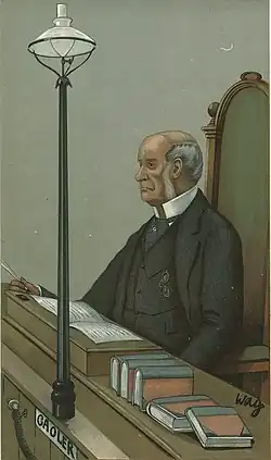 Albert de Rutzen (1831-1913) rowed no. 3 for Cambridge in the two Boat Races of 1849. He appeared in Vanity Fair on becoming Chief Magistrate in London, a post he held until retirement in 1913.