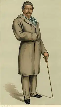 Five months later, in May 1883, Vanity Fair featured Lawes and his lawyers Russell and Webster, offering them praise and encouragement as they moved for a new trial and began to appeal. (Verheyden did all three portraits, the Napoleonic rendering of Lawes imbuing him with a calm but righteous firmness.) Eventually, under prodding from the appellate court that included two Cambridge Blues (Denman and Brett), Belt agreed to a reduction in damages to £500, but Lawes chose to go for broke. Unfortunately for him, that’s exactly what he was forced to do, for in March 1884 the court affirmed the original award (which had by then swelled to £10,000 in damages and costs) and to stave off the ignominy of having to pay Belt anything, Lawes promptly filed for bankruptcy. The fact that one of Belt's leading witnesses, a certain Mr. Schotz, came forward in January 1885 and confessed his testimony was perjured, did not alter the situation.[3] Lawes spent the next sixteen years poor, before inheriting from his father.