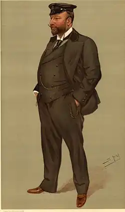 Within the span of his four-and-thirty years he has made himself one of the best-known men of his age in the country. Beginning at Eton as a slim athlete who presently developed weight that made him quite useful as stroke of the Eton Eight and in the Field Game, he went into the Warwickshire Militia and thence into the Scots Guards. With the late Captain Lawrence, of the Rifle Brigade, he founded the Army Football Association, and he has consistently shown himself a sportsman of the best class. He took to coaching, which he has long given up; he grew fond of horses, and with the famous Isinglass came, saw, conquered, and made his popularity as an owner general; so much so that he has been modestly heard to say that he is better known in many quarters as the “owner of Isinglass” than by his own name. But his chief sport is yachting; to which he is devoted. He was partner with Lord Dunraven in Valkyrie III.; and he now owns the fastest and finest steam yacht afloat in the Giralda, which can do two-and-twenty knots. He also holds the International Cup for steam yachts. His devotion to sea-sport has developed in him keen naval tendencies, and these made him fight the Newmarket Division at the General Election; which fight resulted in a triumph for himself and Conservatism. Though he has not yet been heard in the House, there can be no doubt that Imperialism will profit by his vote and voice when he is. He is very rich and quite generous; yet being a shrewd fellow, he is not to be taken in; and it is much to say for him that no word has ever been said against him in any branch of sport.