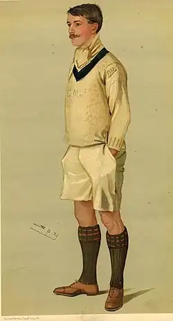 At Eton, once upon a time, a crew of eight Pitmans beat an eight of Mr. Cornish’s House in a boat race. Charles Murray is the seventh of eight brothers; who included F.I. Pitman, the famous Light Blue stroke of 1884, 1885, and 1886, and T.T. Pitman, of the Eton Eight, who won the Half Mile Championship. Born in Edinburgh three-and-twenty years ago, he began to acquire book-learning at Temple Grove, East Sheen; whence he went to Eton, rowed and became Captain of the Boats, sculled, played the Wall game, learned a little more, and did other wholesome things; after which he went to New College and stroked a first-rate Oxford eight in his first year. A year later he rowed No. 7, and last year he stroked another eight: an office that he is to repeat on Saturday, when he hopes to watch eight Cambridge galley-slaves toiling in his wake for most of the distance between Putney and Mortlake. His other rowing achievements include the Grand and the Visitors’ at Henley, and the Oxford University Sculls, Pairs and Fours. He is the newest President of the Oxford University Boat Club, and a typical young barbarian of the better sort.