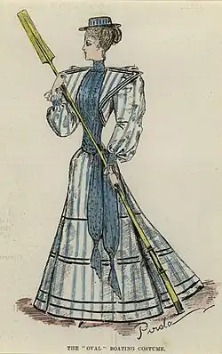 In its early and middle years Vanity Fair limited its remarks on rowing fashion to such items as Woodgate’s occasional slash at unsanctioned “blazers.” En route to the 1914 absorption into the women’s magazine Hearth and Home, Vanity Fair started carrying such articles as Mary Howarth’s “Toilettes for Henley Week: Fashions the River Gods Approve,”appearing in the same issue as Mr. Rowe: