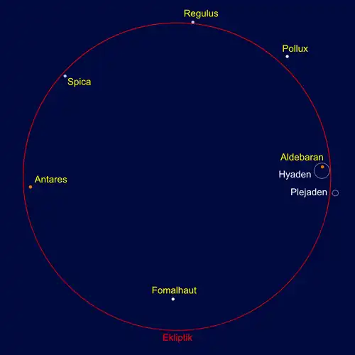 - ↑ See "Aldebaran" in: Johann Heinrich Zedlers Grosses vollständiges Universal-Lexikon aller Wissenschaften und Künste, 1731-1754, Spalte 1095