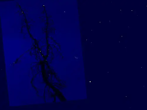Ecept for the stars Sirius, Rigel and Saiph, which are clearly remote in relation to the region described on the left, all other bright stars can be assigned to the sky table without problems.