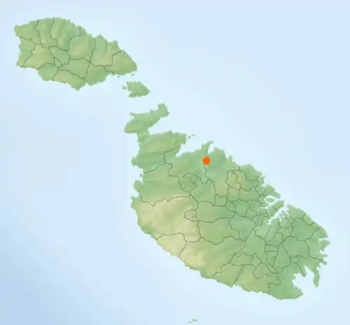 The temple complex of Tal-Qadi is located ten kilometres northwest of the capital Valletta in the northern part of the island republic near today's small town Sàn Pawl il-Baħar. The location is at 35 ° 56'12 "north latitude and 14 ° 25'14" east longitude. The height above sea level of the Mediterranean is around 16 meters.