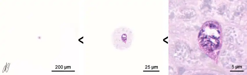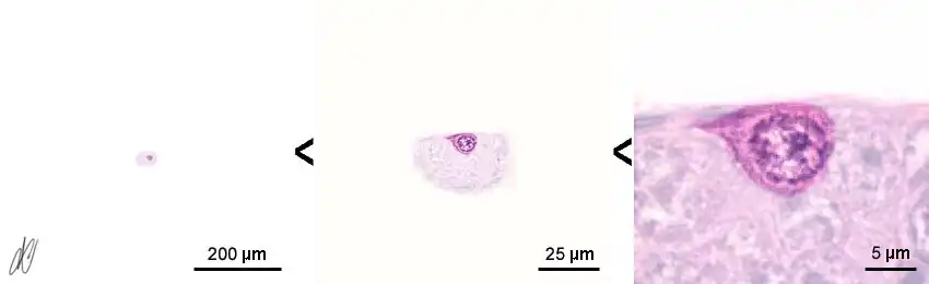 cluster of cells with a single cell highlighted; adult female zebrafish, H&E staining