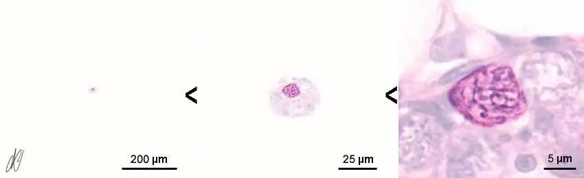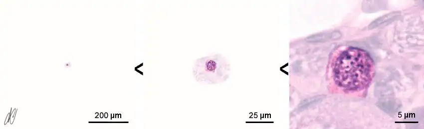 - further increase of cytoplasm volume with corresponding increase in cell diameters to a range of 80-160 µm;