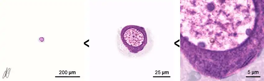 - further increase of cytoplasm volume with corresponding increase in cell diameters to a range of 140-270 µm;