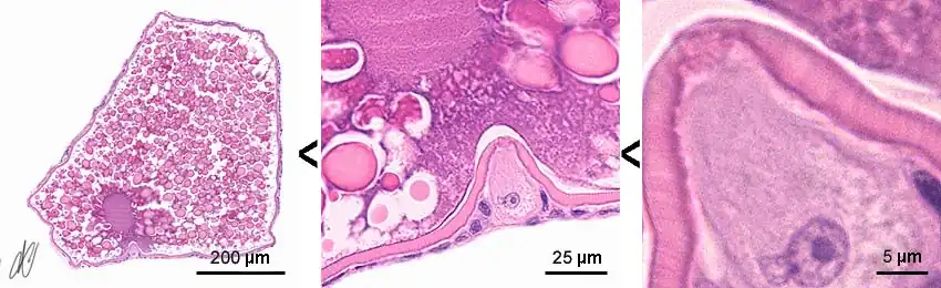 - the zona radiata is clearly visible (thickness ~2 µm).