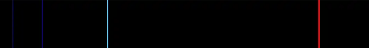 Visible emission spectrum of atomic hydrogen, containing four lines of the Balmer series.