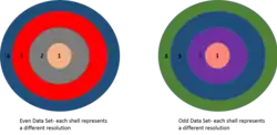 Once a 3D reconstruction is obtained it is important to determine how good the reconstruction is. This is done by using the Fourier Shell Correlation. Essentially the primary set of particles is divided into an even subset and an odd subset in which a structure is calculated for each subset. Each set is then backprojected to obtain a volume for each subset. Since the goal is to determine the quality of the reconstruction the data is divided into rings within Fourier space with each ring representing different resolutions. The Correlation coefficient is then calculated between the structure for the even subset and the odd subset based on their frequency.