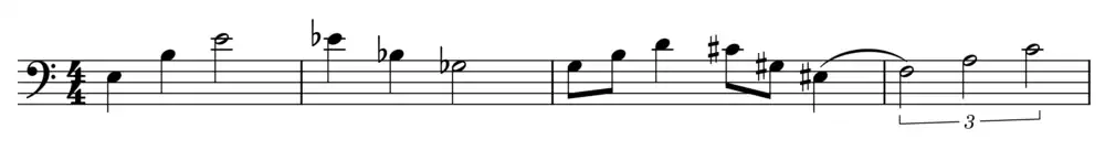 The opening motif used in the introduction Sunrise is also derived from a physical number series, namely the natural tone series, whereby its first, second, third, fourth and fifth tones with the frequency ratios 1:1, 2:1, 3:2, 4:3 and 5:4 play a central role in relation to the fundamental.