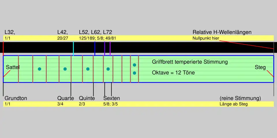 The tone frequencies given in the second column thus refer to the concert pitch A with 440 hertz. The wavelengths given in the last column correspond almost exactly to the five wavelengths given in Balmer's 1884 publication for the hydrogen lines in the visible range (see above).