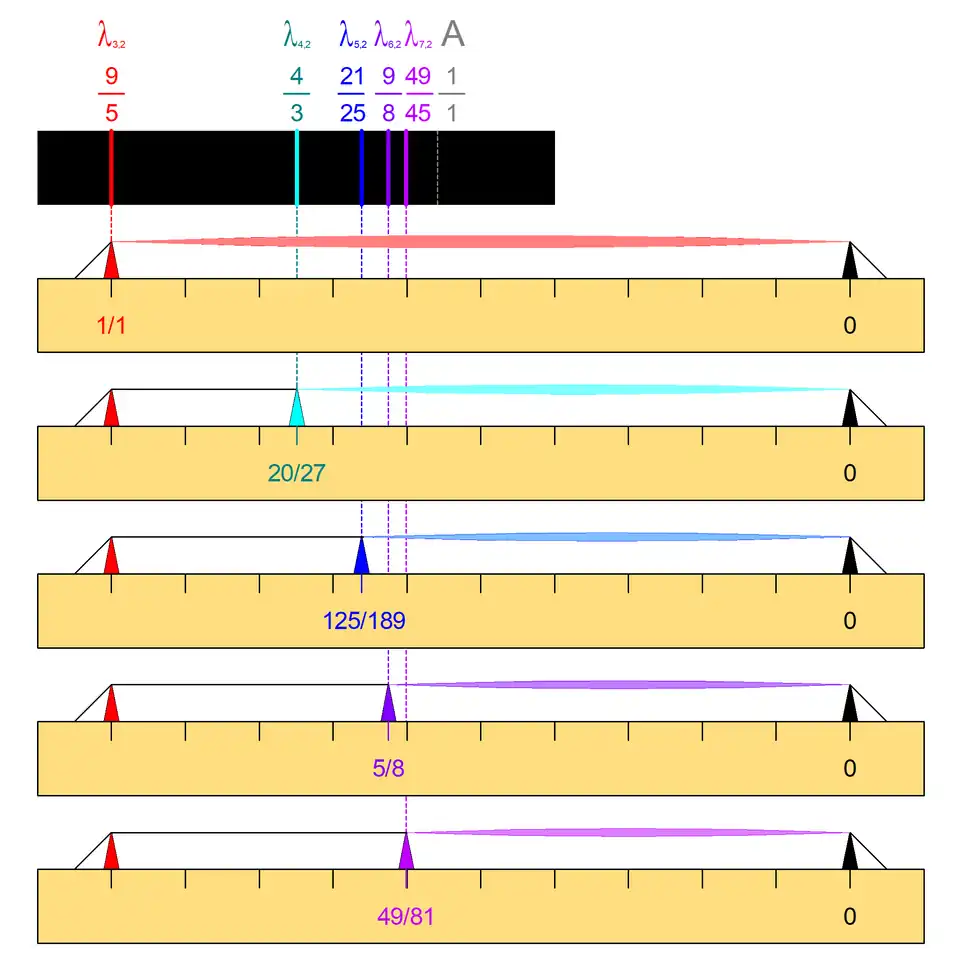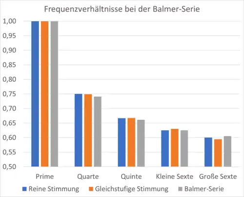 The next table compares the corresponding musical pure intervals with the frequency ratios in the Balmer series: