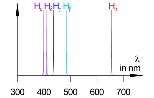 - ↑ Johann Jakob Balmer: Notiz über die Spektrallinien des Wasserstoffes, in: Verhandlungen der Naturforschenden Gesellschaft in Basel, Band 7, Seiten 548 bis 560, H. Georg's Verlag, 1884