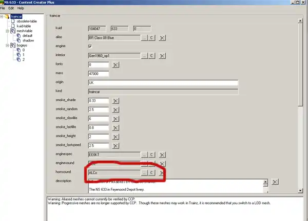 - Scroll through until you see the 'hornsound' tag and replace its kuid with one of your desired hornsound.