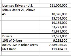 As of August 2014, there were 1,228,573 members and 24 car-sharing operators in the U.S. The total U.S. carsharing fleet was 17,179 vehicles, which makes a 71:1 membership to vehicle ratio, significantly higher than it was in 2005. [20]Researchers predict that market share has the potential to occupy 10% of the market for individuals over the age of 21 in North America.[21]