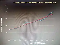 During the mature (post-1980s) phase of civil aviation in Cyprus, the industry continued to experience growth and modernization[22]. Tourist arrivals to Cyprus have increased significantly, notably peaking at around 2 million passengers in 2004, leading to an increase in demand for air travel[29]. In response to changing market and competitive conditions, Cyprus Airways expanded its fleet and routes, and new airlines entered the market.
