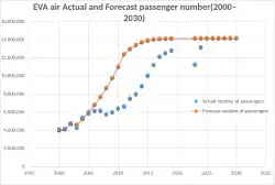 S(max)=Saturation Number of passengers transported of EVA air(K)