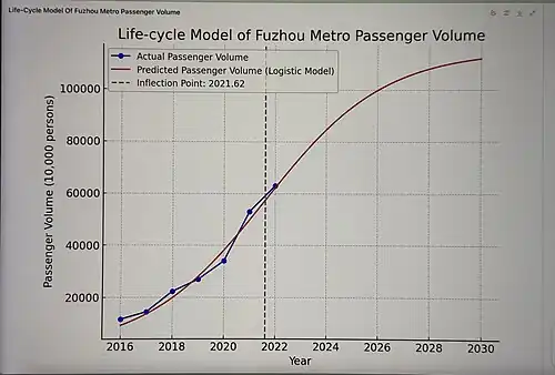 The logical model effectively captures the life cycle trajectory of Fuzhou Metro. The growth in passenger volume is largely influenced by the policy-driven expansion of the network. It is projected that around 2030, the metro will enter its mature stage, highlighting the significance of intelligent operation and regional integration strategic innovation in maintaining long-term growth.