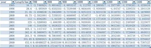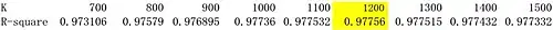 Then a regression between Y and year is performed to decide which K value fits the real data best. The largest R-square means that the model best explains the real data. From the table below, when K=1200 km the R-square is the largest. So the K value is estimated to be 1200.