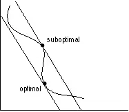 If the production possibilities set (PPS) is convex, it is possible to identify an optimal input combination based on a single condition. However, if the PPS is not convex the criteria becomes ambiguous. We need to see the entire isoquant to find the optimum but without convexity we can be 'myopic', as illustrated on the right.