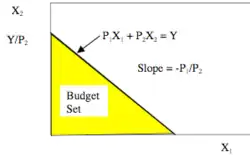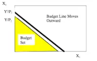 Often one price is taken to be 1, and one good is taken to be money. An income increase can be represented by the outward movement of the budget line.