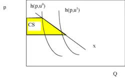 The Hicksian Demand or compensated demand is denoted h(p,u).