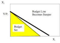 An increase in the price of good can be represented by a change in the slope of the budget line (still anchored at one end).