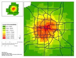 Accessibility refers to the ease of reaching destinations. People who are in places that are highly accessible can reach many other activities or destinations quickly, people in inaccessible places can reach fewer places in the same amount of time.