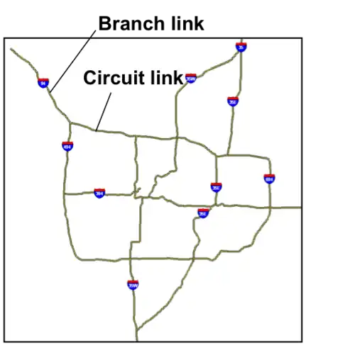 Networks have a variety of connection patterns Strategic links (arterials) connect contiguously in most road networks. The geometric patterns of arterials at a collective level play a profound role in shaping traffic pattern and urban landscape. Existing graph theoretic measures of network topology and connectivity do not identify and quantify connection patterns of networks, such as shown in the image on the right.