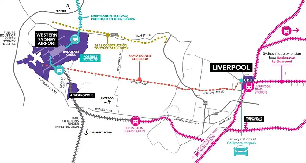 - 19 km corridor on the fifteenth avenue connecting Liverpool CBD to the new airport