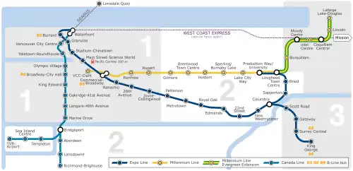 - ↑ a b "Vancouver SkyTrain Network." Railway Technology. Web. 16 Sept. 2011. [6].