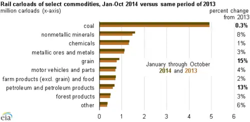 - ↑ U.S. Energy Information Administration, based on Association of American Railroads