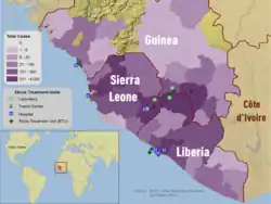 - ↑ Centers for Disease Control (October 2014). 2014 Ebola Outbreak in West Africa – Outlook Distribution Map. From http://www.cdc.gov/vhf/ebola/outbreaks/2014-west-africa/distribution-map.html