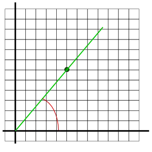 Example: The point (5,6) is plotted and the line is measured to be about fifty degrees with the x-axis.