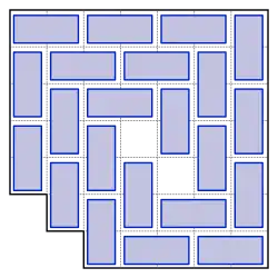 In this puzzle the objective is to tile the chosen area with 23 dominos, polyominos with just two squares.