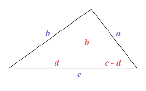 To get closer to the result we need to get an expression for somehow, that does not involve d or h. There is a useful trick in algebra for getting the product of two values from a difference of squares. We can get cd like this: