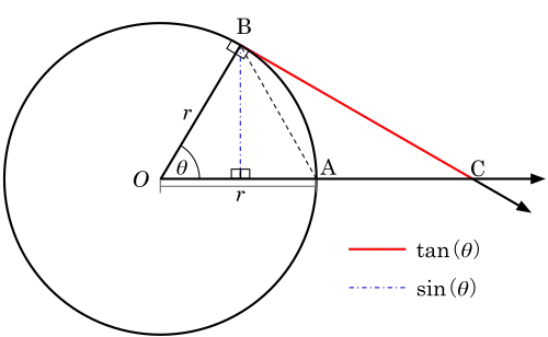 Theorem: If ; is a positive angle, less than a right angle (expressed in radians), then .