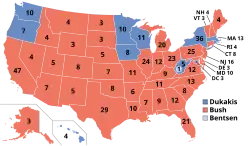 Bush won the election with 48.9 million votes (53.4%) against Dukakis's 41.8 million. Carrying 40 states, Bush won in the Electoral College 426 votes to 112.