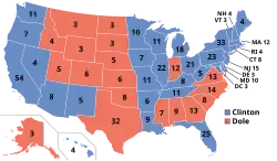 The Clinton camp began to use the famous slogan "It's the economy, stupid!" and he was successful in presenting his theme of change. Clinton won an overwhelming majority in the Electoral College (370 to 168) but received only 43 percent of the popular vote.