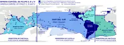 Catholicism was introduced to the American colonies by the Spanish settlers in what is now present day Florida (1513) and the South West United States.[2] The first Christian worship service was a Catholic mass held in Florida in 1559, in what we now identify as Pensacola. Spain established the first permanent European Catholic settlement in St. Augustine, Florida in 1565, to help the settlers complete the "moral imperative" which was to convert all the Native peoples to Christianity, and to also to help support the treasure fleets of Spain.[3] During the time period of 1635-1675 Franciscans operated between 40 and 70 mission stations, attempting to convert about 26,000 "Hispanicized" natives who organized themselves into 4 provinces, Timucua, in central Florida, Guale, along the coast of Georgia, Apalachee on the northeastern edge of the Gulf of Mexico, and Apalachicola to the west.