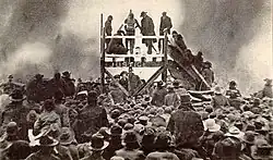 The responses to plague can be seen in the records left by survivors -- one third of the population of Europe died in repeated waves of disease -- and in the subsequent changes in society. Airplanes and satellites show the foundations of plague-era towns which were emptied by the disease. In just one square mile of pre-plague Europe there are reports of there being 50,000 people.[2] In large cities, families would flee or lock themselves away, trying to keep themselves from death. Other families were locked in by city authorities. This is the beginning of the modern system of quarantine.[3] Some branches of the family would not be among those so helped. The Black Death seemed erratic, sometimes taking people deemed good and pious, sometimes not. One priest or church prelate might die, and another survive. And a living priest might give no aid to other survivors. Some critiques of the Church which had become spread through most of Europe date from this era.