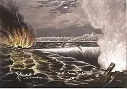 On December 29, Canadian loyalist Colonel Sir Allan MacNab ordered a party of militia to cross the river and set the Caroline ablaze. Finding the ship docked at Fort Schlosser, New York, they seized it, towed it into the current, set it afire, and cast it adrift over Niagara Falls. The American Amos Durfree, a Black, was killed during the incident. Although the ship had been abandoned before being set adrift, American newspapers falsely reported that dozens of citizens had been killed as they were trapped on board. President Martin Van Buren entered an official protest of the loss of life. In retaliation, on May 29, 1838, an American river pirate and his men burned British steamer Sir Robert Peel while it was in the United States. After the burning of the Caroline, the Macknenzie party had no means of gaining supplies, and eventually folded.
