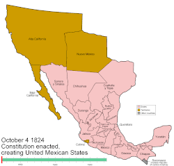 Due to past US actions in Texas, Mexico feared that white Americans would convince the United States to annex Texas and Mexico. In April 1830, Mexico issued a proclamation that people from the United States could no longer enter Texas. Mexico also would start to place custom duties on goods from the United States. In October 1835, white colonists in Texas revolted against Mexico by attacking a Mexican fort at Goliad, defeating the Mexican garrison. At about the same time, the Mexican president, Antonio López de Santa Anna, provoked a constitutional crisis that was among the causes of the revolt in Texas, as well as a rebellion in the southern Mexican province of Yucután. An official declaration of Texas independence was signed at Goliad that December. The next March, the declaration was officially enacted at the Texan capital of Washington-on-the-Brazos, creating the Republic of Texas.