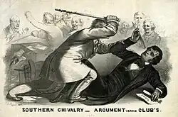 Violence over the issue of Kansas was even seen in the Senate. Massachusetts Senator Charles Sumner accused South Carolinian Andrew Butler of having "chosen a mistress to whom he has made his vows - Slavery." Upon hearing these words, Butler's nephew, Representative Preston Brooks, walked onto the Senate floor and proceeded to cane Sumner in the head. Sumner suffered so much damage from the attack that he could not return to the Senate for over three years. Brooks was expelled by the House. Cheered on by southern supporters (many of whom sent Brooks new canes, to show approval of his actions), came back after a resounding reelection.