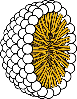 The lipid molecules came together into microscopic ball shapes called micelles. Micelles are made of lipid molecules. There is a picture below.