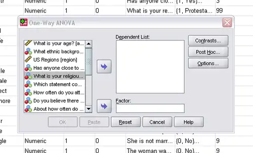 Now select the (quasi) independent variable from the list on the left and click on it. Move it into the Factor box by clicking on the lower arrow button. In our example this is religious affiliation.