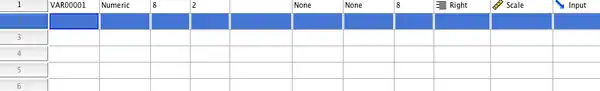 Finally, you must specify your level of measurement. This may be done by clicking on the cell under the column labeled “Measure” and choosing from Nominal, Ordinal, and Scale: